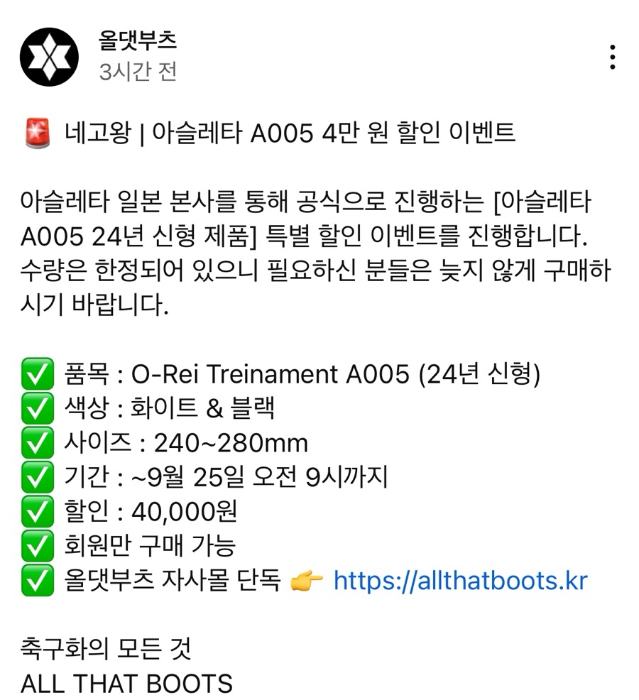 또한 이번 특가는 2024년도 모델에다가 일본 아슬레타와 정식 수입 계약을 맺고 있는 설가스포츠와 함께하는 이벤트로 알고 있어 그 제품의 보증 또한 확실할 것으로 보여지는데요.